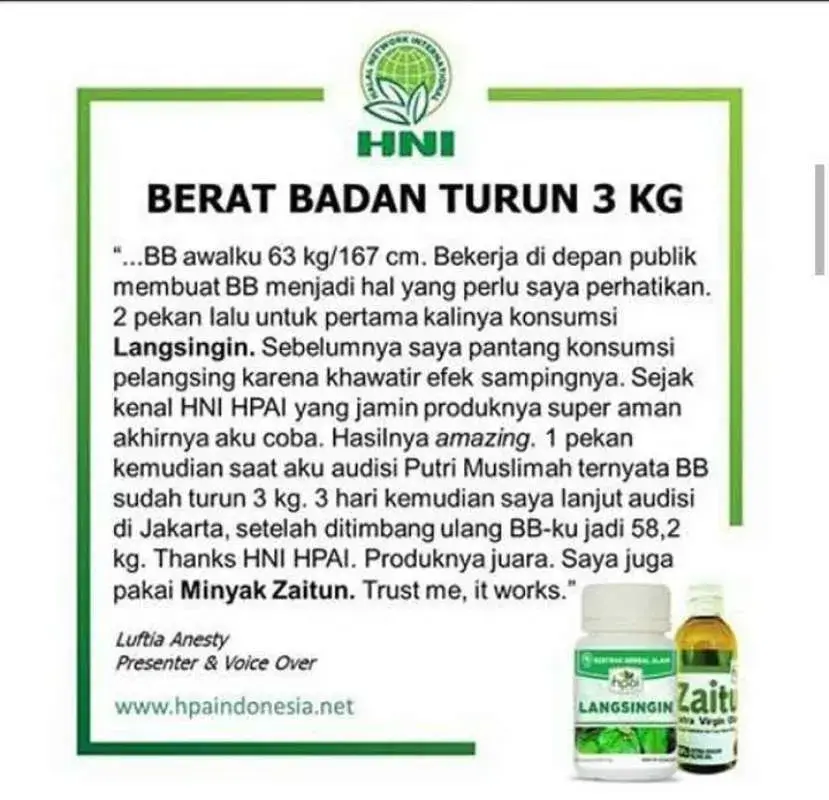 Langsingin terbuat dari herba alami pilihan yang dikomposisikan untuk membantu masalah kegemukan akibat dari penyimpanan lemak dalam tubuh yang berlebih.